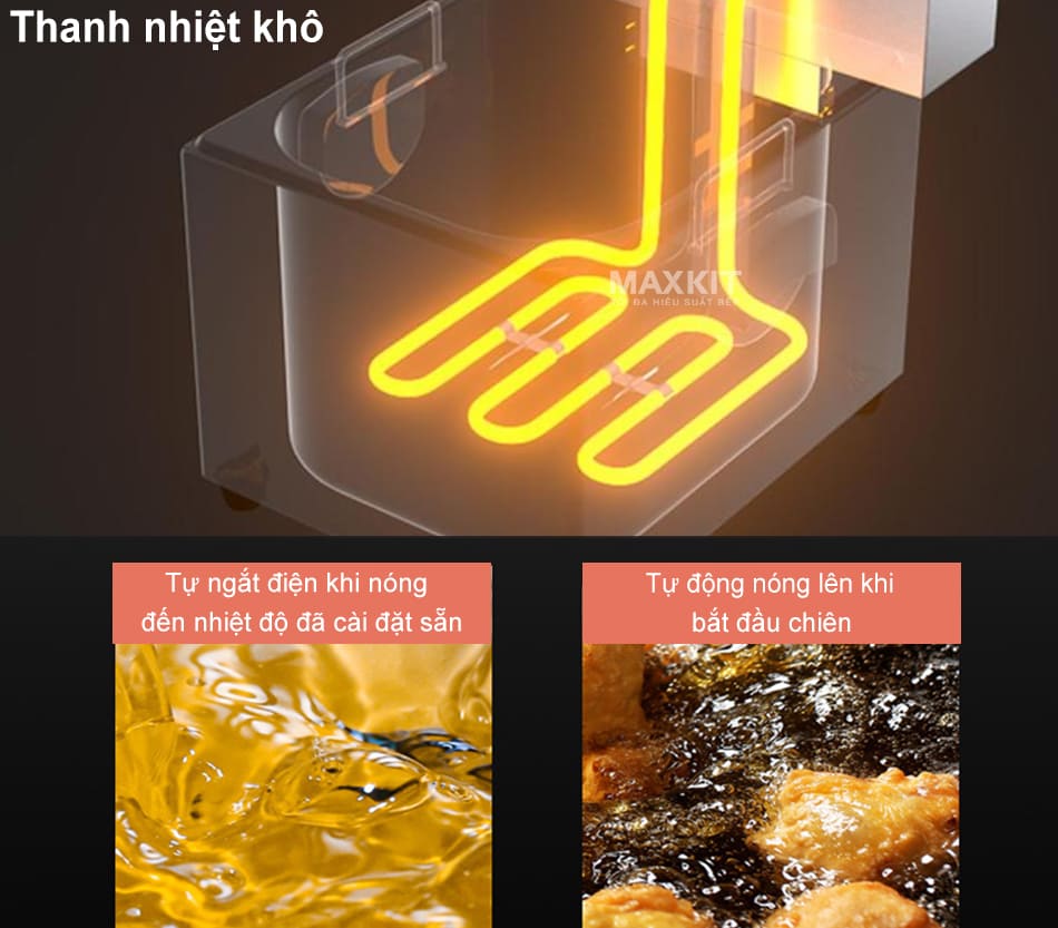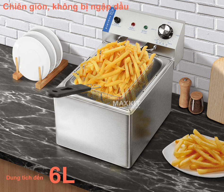 Khoảng nhiệt độ hoạt động từ 50 – 200°C cho phép người dùng dễ dàng lựa chọn mức phù hợp với từng loại thực phẩm. Từ các món chiên nhẹ nhàng như khoai tây chiên, xúc xích cho đến gà rán, hải sản tẩm bột, bếp đều đảm bảo chiên vàng giòn đều, giữ được hương vị thơm ngon và hạn chế cháy khét. Chính sự linh hoạt này giúp bếp chiên nhúng điện này trở thành công cụ hữu ích trong nhiều mô hình kinh doanh ẩm thực khác nhau.