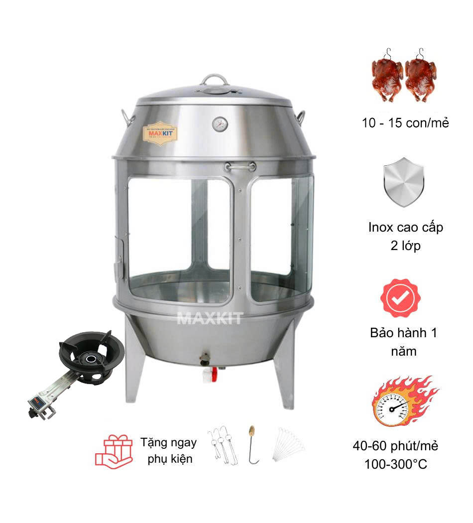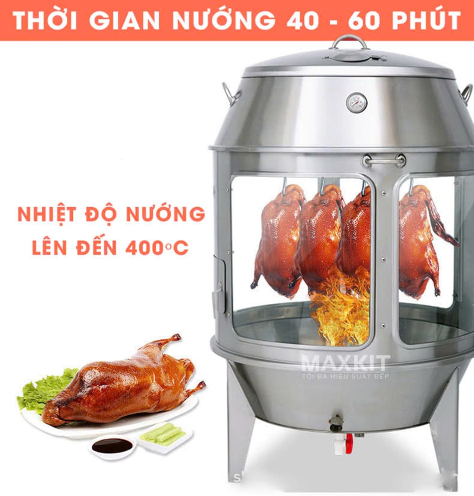 Đồng thời, lò quay vịt bằng Gas cửa kính 90 có năng suất quay 10–15 con mỗi mẻ, đáp ứng tốt nhu cầu phục vụ cho nhà hàng, quán ăn hay các sự kiện vừa và nhỏ, trong khi nhiệt độ cao kết hợp với đầu đốt hiệu năng giúp rút ngắn thời gian chế biến so với các phương pháp truyền thống.