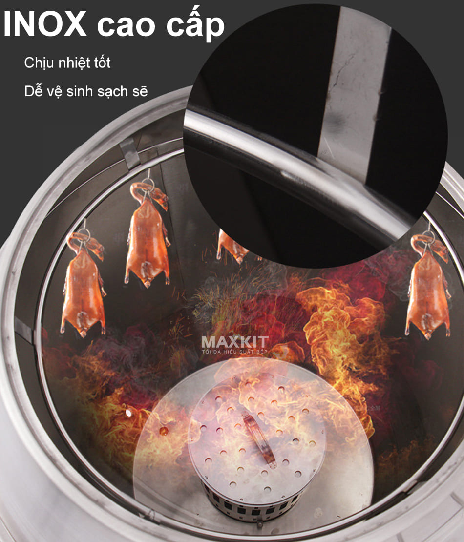 - Thích hợp cho các mô hình cần duy trì hương vị quay than hoa truyền thống hoặc kiểm soát nhiệt nhanh bằng gas.