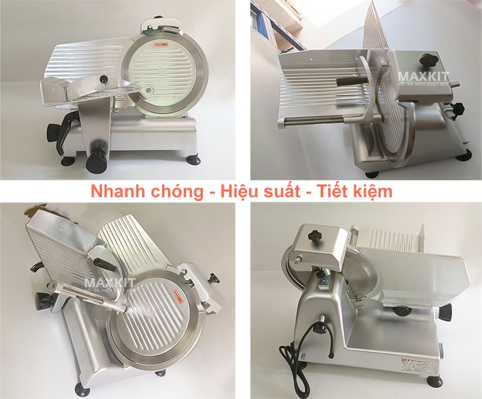 Máy sử dụng điện trực tiếp, không cần nhiên liệu ngoài, giúp người dùng tiết kiệm chi phí trong quá trình sử dụng. Khi vận hành, chỉ cần cắm điện, đặt thực phẩm lên bàn trượt và đẩy nhẹ về phía lưỡi dao. Hệ thống motor hoạt động êm ái, ít gây tiếng ồn, mang lại trải nghiệm thoải mái và an toàn.