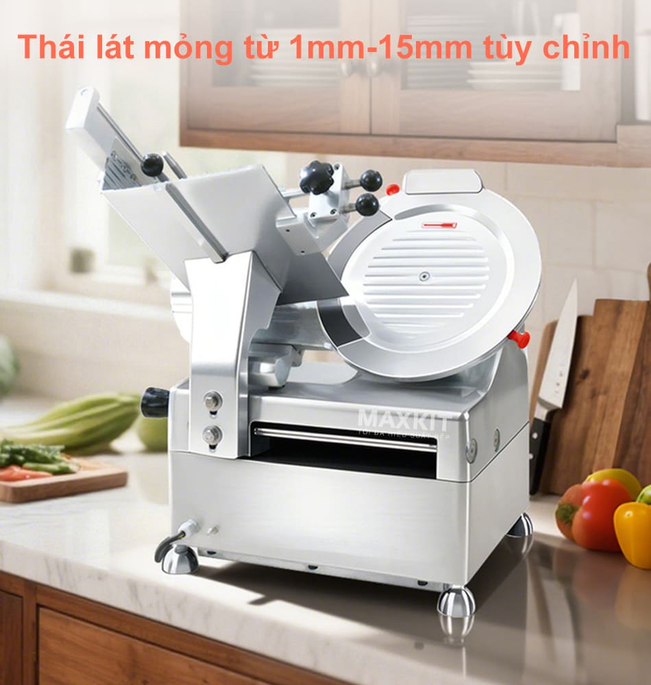 - Điều chỉnh lát cắt linh hoạt: Từ mỏng 1mm đến dày 15mm, đáp ứng yêu cầu đa dạng từ món nướng, lẩu, phở cho đến các món cuốn.