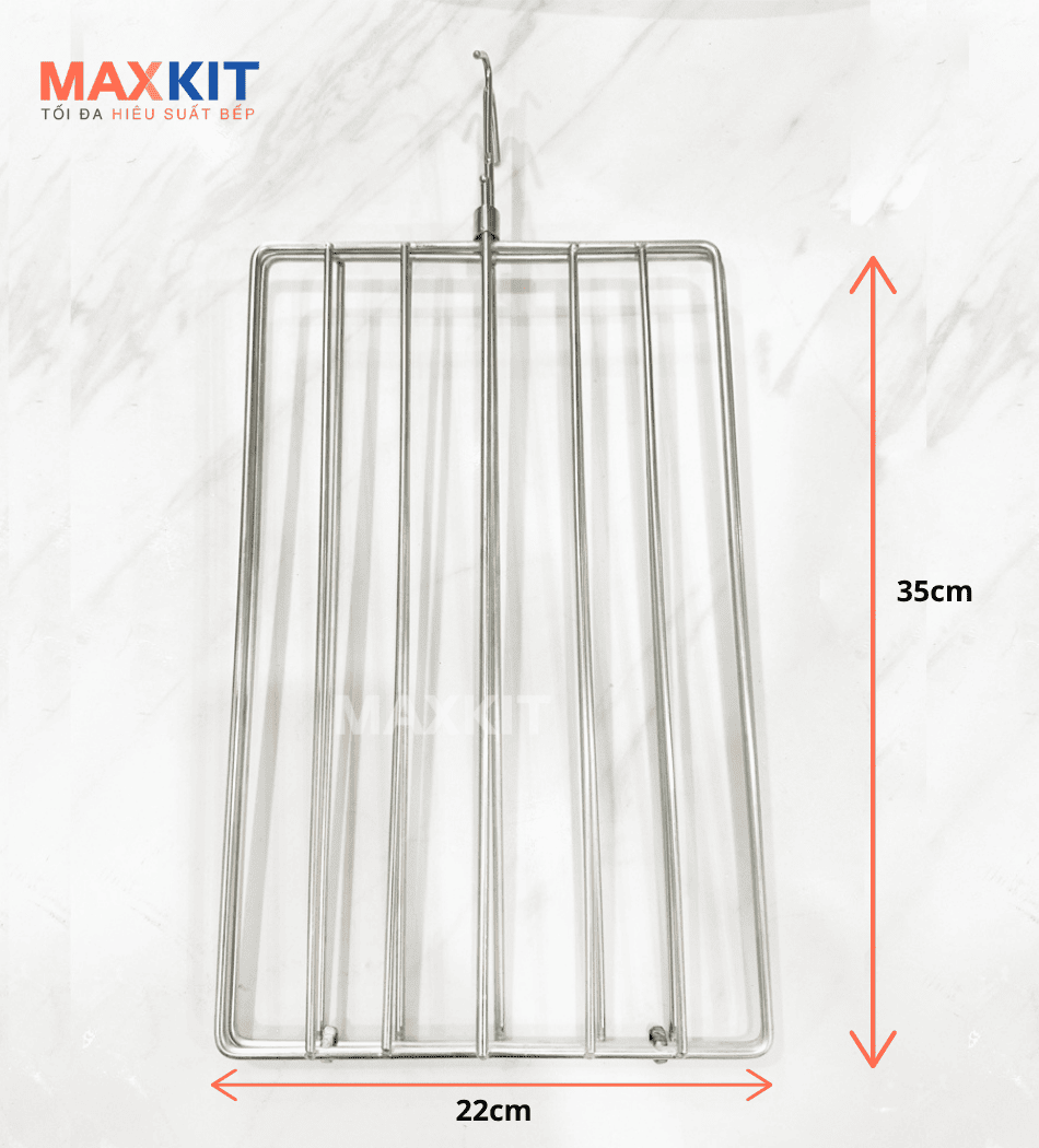 Kích thước vỉ nướng phanh gà vịt treo lò 35 x 22 cm được thiết kế để phù hợp đa số lò quay và lò nướng công nghiệp nhỏ — vừa đủ để treo phanh gà vịt cỡ trung nhỏ đến vừa, đồng thời vẫn tiết kiệm không gian khi xếp nhiều vỉ trong lò. Kích thước này giúp người dùng dễ dàng lắp đặt vào khay hoặc thanh treo tiêu chuẩn, thuận tiện trong quá trình quay đồng loạt.